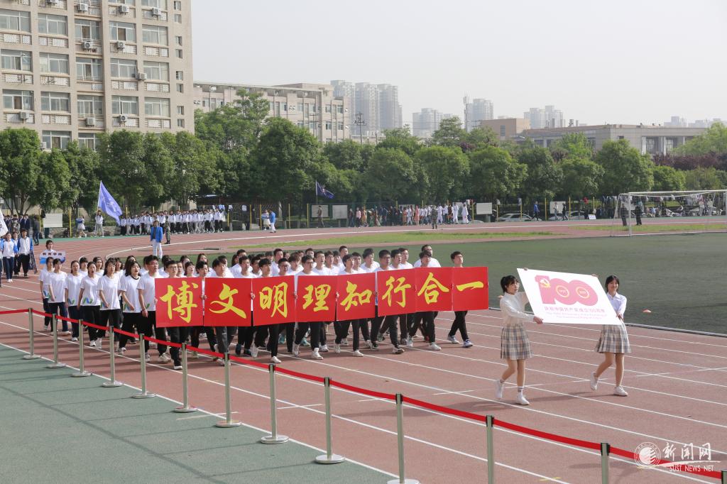 激昂的运动员进行曲中,三旗仪仗队、裁判员、运动员、青年志愿者等代表队方阵迈着矫健步伐依次通过主席台前,他们的脸上洋溢着青春和热情。充分展示了陕科大师生以习近平新时代中国特色社会主义思想为指导,贯彻党的教育方针,以立德树人为根本任务、学科建设为龙头、师资队伍建设为重点、深化改革为动力、党的建设为保证,贯彻“创新、开放、共享,学科、结构、质量”的新发展理念,构建“六个聚焦”的新发展格局,深入实施奠基、复兴、腾飞“三步走”发展战略,积极探索新机制、新平台、新路径,着力构建全方位、多层次、立体化开放办学大格局,推动学校内涵式高质量发展。