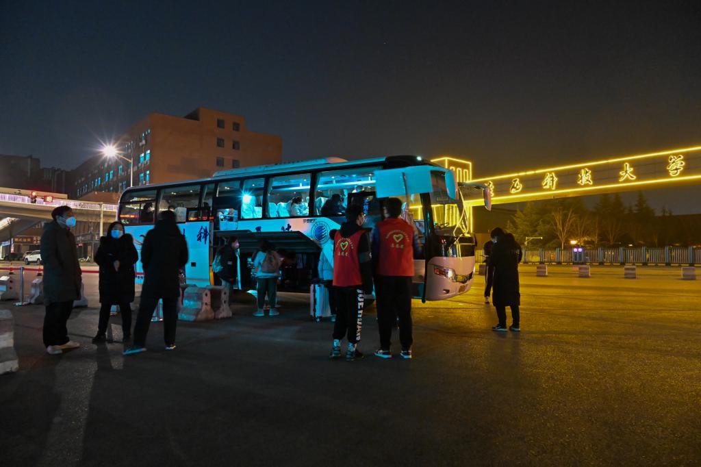 各学院青年教师也组成一支几十人的队伍,前来帮忙。阿尔斯特学院王伟伟、材料学院欧阳海波、张新孟,经管学院邢战雷、电智学院任喜伟、姚斌担任青年教师跟车调度员,跟随每一辆接驳车前往“三站一场”送站。设艺学院青年教师常亮从1月17日晚跟随第一批返乡学子开始,已经陆续送走了十几批学生,每天早上5点起床,晚上8点回家已经成为他的“战时作息”。