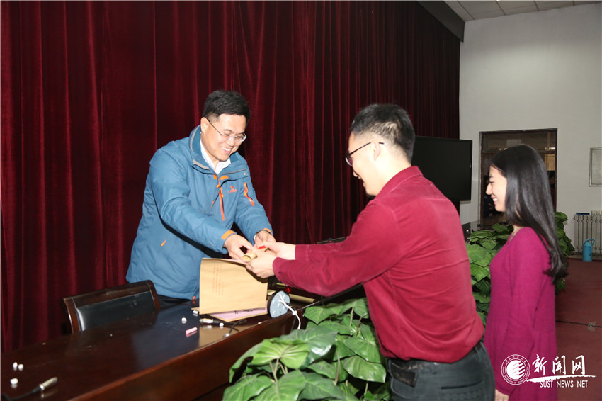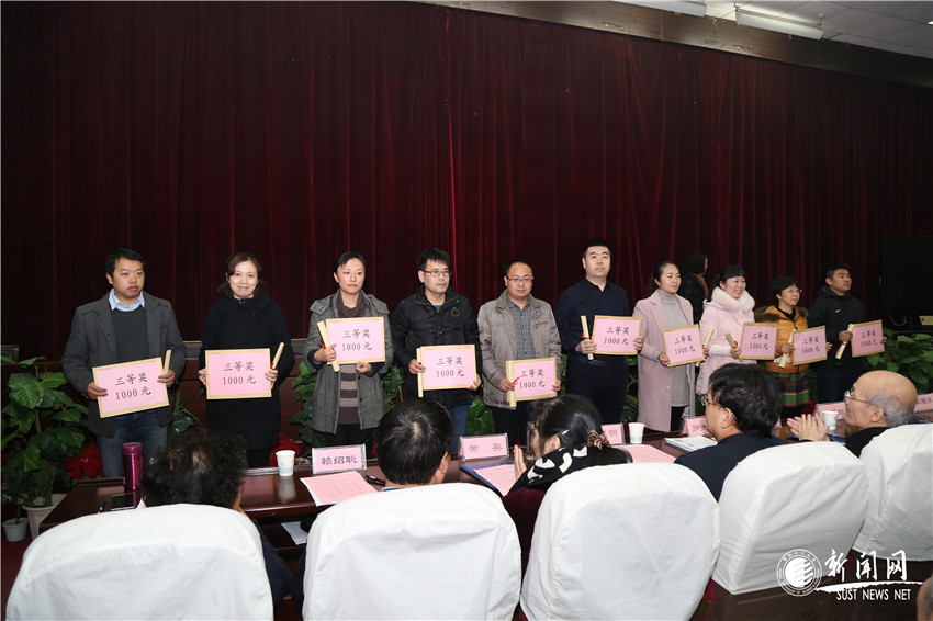 副校长马建中为一等奖获得者张金、杨素秋颁奖