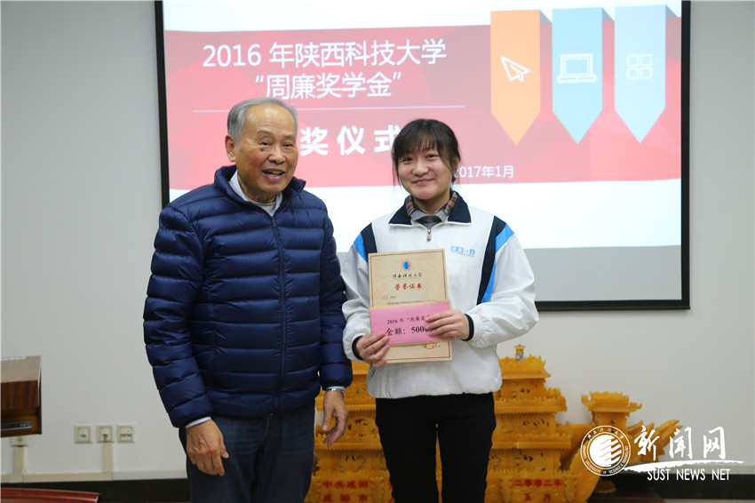 1月6日下午,第四届“周廉奖学金”颁奖仪式在逸夫楼506会议室举行。四年来,该奖学金共奖励学生80名,奖励金额40万元。我校名誉校长周廉,西安天力金属复合材料有限公司董事、副总经理周颖刚,校长姚书志,校党委副书记温锋及19名获奖学生参加了颁奖仪式。仪式由学工部部长主持。