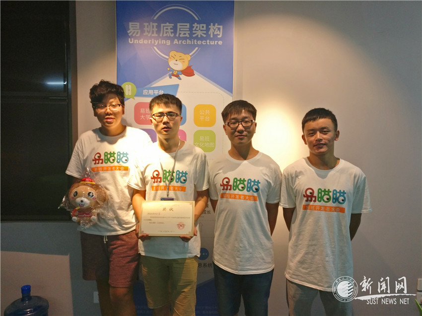 8月21日至25日,第一届全国高校易班开发者大会在上海举行。由文理学院张诚,电气工程与信息学院高宇挺、王景锋,职业教育示范学院韩兴达等4名学生组成的我校开发团队在两天的激烈比拼中经过创意讨论、应用开发、软件调试等环节,完成了“校园综合服务平台”应用,后经产品路演,赢得了评委一致好评,并作为4所陕西参赛高校的唯一获奖代表,最终荣获三等奖。