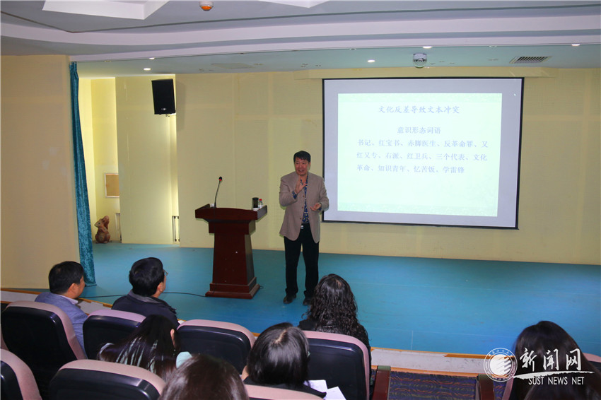 11月15日上午,全国翻译专业学位研究生教育指导委员会学术委员会委员、中国英汉语比较研究会理事、新疆大学谢旭升教授应邀做客文理学院导师论坛,并做了题为《文化翻译多棱镜—磨合的艺术》的学术报告。报告会由文理学院院长蔺小林主持,文理学院外语系教师、翻译硕士研究生听取了报告。