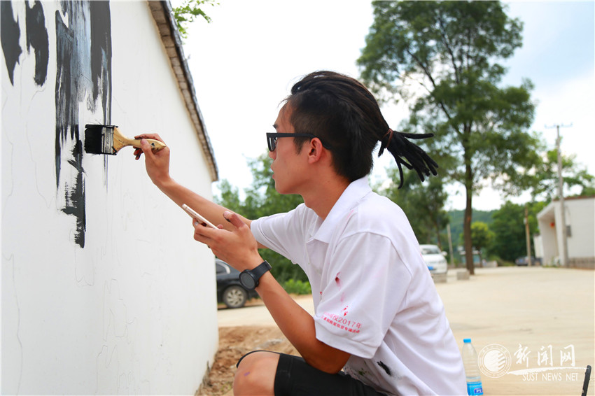 创新扶贫社会实践团。7月13日,设艺学院创新扶贫实践团到达王石凹村,开展为期十天的脱贫攻坚专项社会实践活动。实践团以扶贫先扶志为主旨,通过绘制美丽乡村文化墙,进一步推进脱贫攻坚宣传工作,弘扬印台当地文化,让广大村民树立自主创业,努力脱贫的意识,凝聚合力,打赢脱贫攻坚战。