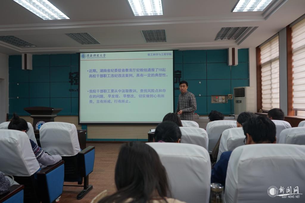 4月11日下午,轻工科学与工程学院召开学校思想政治工作会议精神传达学习会。学院党委书记李新平主持会议,学院全体教师参加会议。会上,李新平传达了学校思想政治工作会议精神和学校创建省教育系统“文明校园”工作实施方案,并做了具体工作部署。