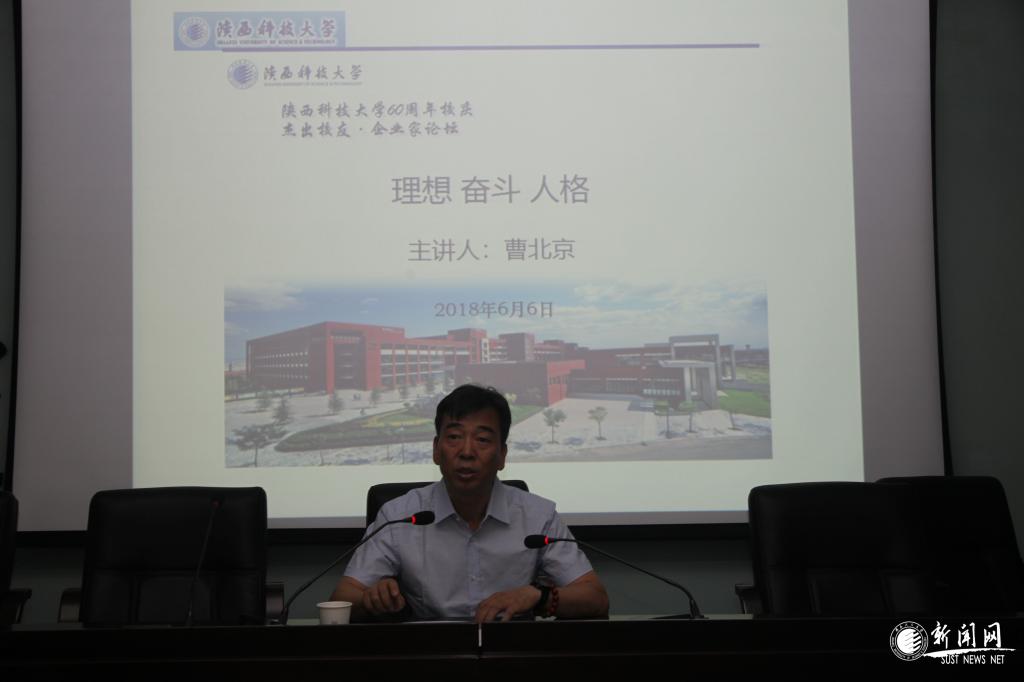 捐赠仪式结束后,曹北京为学院师生代表作了题为“理想、奋斗、人格”的报告。回忆了当年在母校的学习生活,表示四年的生活对自己有巨大的影响,即使走过全球各个大洲,还是感到母校最温暖。他以自己大学毕业时立下的志向“脚踏三秦,走向世界”勉励大家,希望大家有信心有勇气冲击自己的远大目标。最后,曹北京以自己在华为公司的职业生涯为例,提出了企业需要的人才要具备的包括“合作能力”“沟通协调能力”等十种能力。