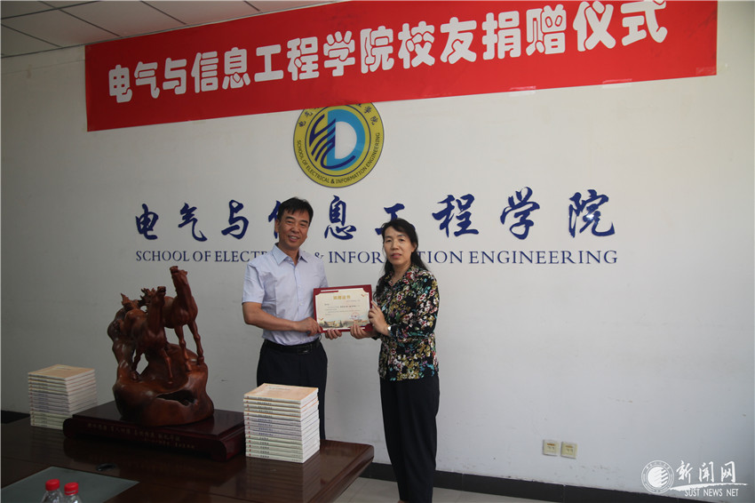 6月6日下午,我校电气87级校友曹北京专程返校向电气与信息工程学院捐赠个人珍藏的黄花梨木雕《骏马奔腾》以及华为企业文化相关书籍,并作了题为“理想、奋斗、人格”的报告。总会计师徐晓峰出席捐赠仪式,电信学院班子成员、校友总会办公室副主任殷立雄、电信校友会秘书长李光明参加了捐赠仪式,仪式由电信学院党委副书记严渭青主持。