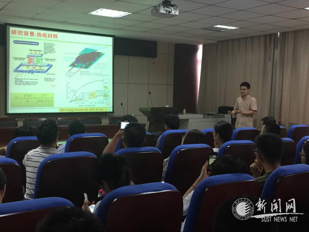 陈志刚副教授首先从“热电材料的起源、分类及机理、调控与改性”三个方面分享了自己对于热电材料新型绿色能源技术的最新研究成果。报告以金属硫族化合物为研究切入点,通过控制材料的晶体结构、尺寸以及掺杂改性来调控其光、电与化学特性。报告讲述过程中,重点介绍了自己团队的最新研究进展及科研成果。陈志刚博士研究团队在Nat. Nanotech.、Nat. Coummun.、Prog. Master. Sci.、Adv. Mater.、J. Am. Chem. Soc.、Angew. Chem. Int. Ed.等国际顶级学术期刊发表数篇高质量学术论文并被同行广泛引用。