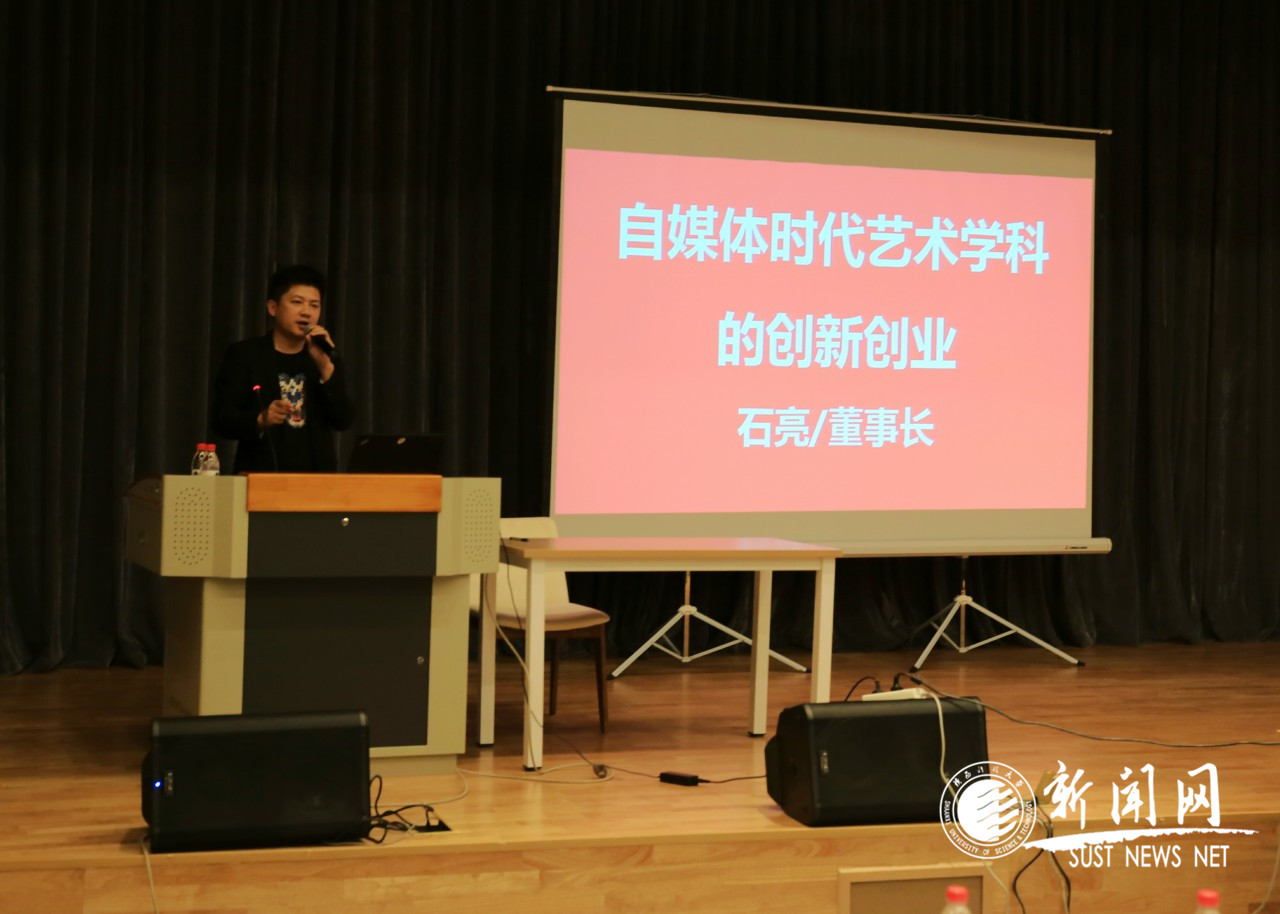 6月26日下午5时,择众传媒股份有限公司董事长、我校校友石亮,做客我校“未央导师论坛”,在人文楼B座五楼多功能厅做了《自媒体时代艺术学科的创新创业》的主题报告。设计与艺术学院相关专业师生、部分返校校友到场参加报告会,副院长米高峰教授担任主持人。