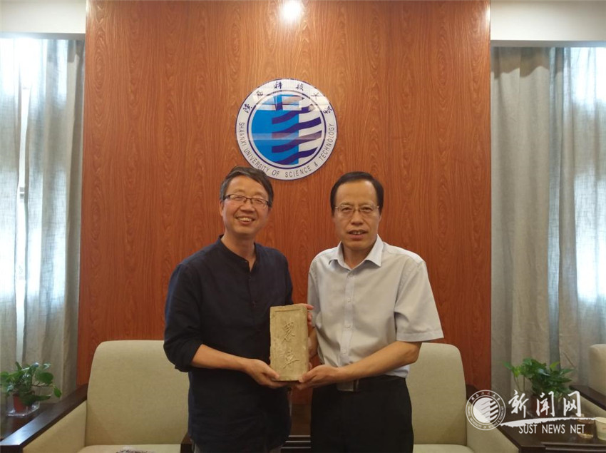 西北农林科技大学博览园主任傅朝荣(右)来两馆交流