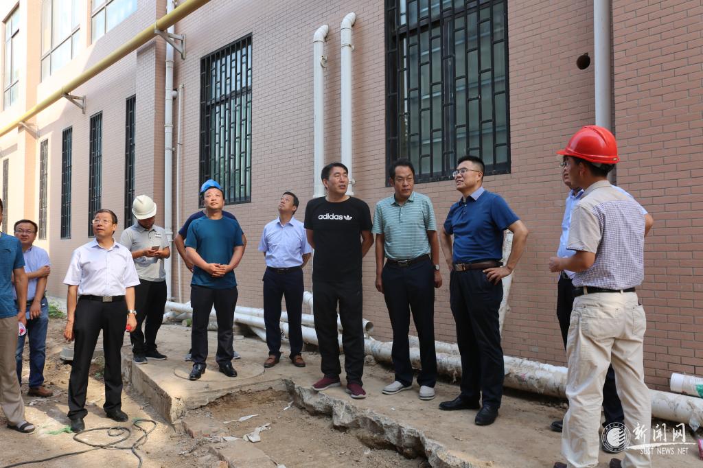在环境科学与工程学院实验楼建设工地、学生生活服务中心浴室工程改造项目施工现场、公寓管理中心防水改造项目施工现场,马建中详细查看了各项工程进展情况,叮嘱施工人员牢固树立安全意识,按时保质保量完成施工任务;