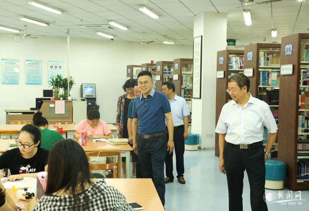 在图书馆,马建中关心询问图书馆暑期开放值班情况并看望了暑期依然在图书馆勤奋学习的学子;