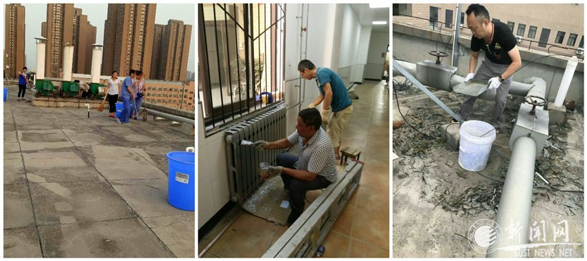 维修改造,服务师生。为确保新学期水、电、暖正常有序供应,动力服务中心利用暑假完成了高压变压器、电缆、接地、避雷器耐压试验,并对各配电室、教学区部分楼宇照明设施进行了全面检修;对教学区及生活区主管道暖气阀门改造;完成学生浴室、科达宾馆楼的水表维修更换;对曝气池循环泵进行更换,同时增加硝化液回流系统等设备解决了氨氮超标问题。工程维修中心完成青教公寓、逸夫楼会议室、教学楼卫生间等改造及教学区人行道维修等工作。物业管理中心完成小高层内电梯监控系统安装及青教公寓楼内7层房屋的粉刷修补;饮食服务中心对沁园楼各餐厅部分天然气管道、洗碗机、风机、净化器及油烟管道等进行更换,并对餐厅进行全面彻底的卫生大清扫,重点做好了各类炊具、餐具的洗刷消毒等前期准备工作。