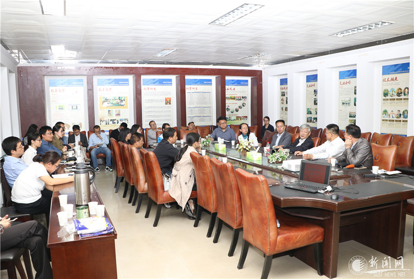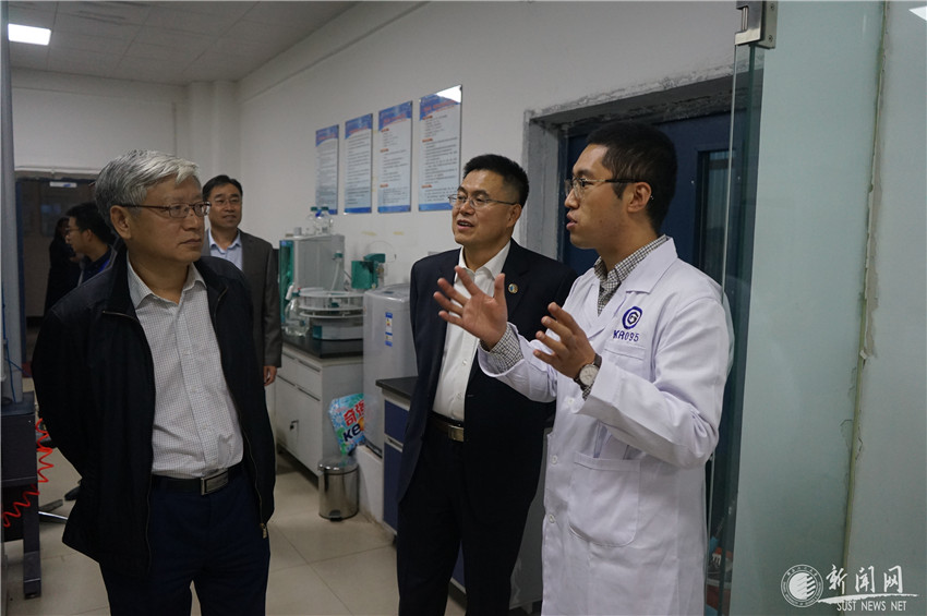 李新平向谢院士简要介绍了轻工学院的历史和学科发展现状,谢院士对学院师资队伍建设和研究生培养情况进行了详细了解。随后,谢剑平院士结合自己的研究,与大家就“生物质化学品与材料在烟草行业的应用”进行了深入探讨,使大家认识到,无论是高性能纸基材料,还是生物质化学品,在优化卷烟的性能和进一步降焦减害上都有很大的研究空间,对拓宽学院教师的科研方向起到了积极的作用。此外,谢院士还对学院的学科发展提出了宝贵的意见和建议。最后,谢院士参观了轻工学院的轻化工程国家级实验教学示范中心、省级重点实验室和分析测试中心,对实验室管理和如何充分提高仪器设备效率等提出了宝贵意见和建议。