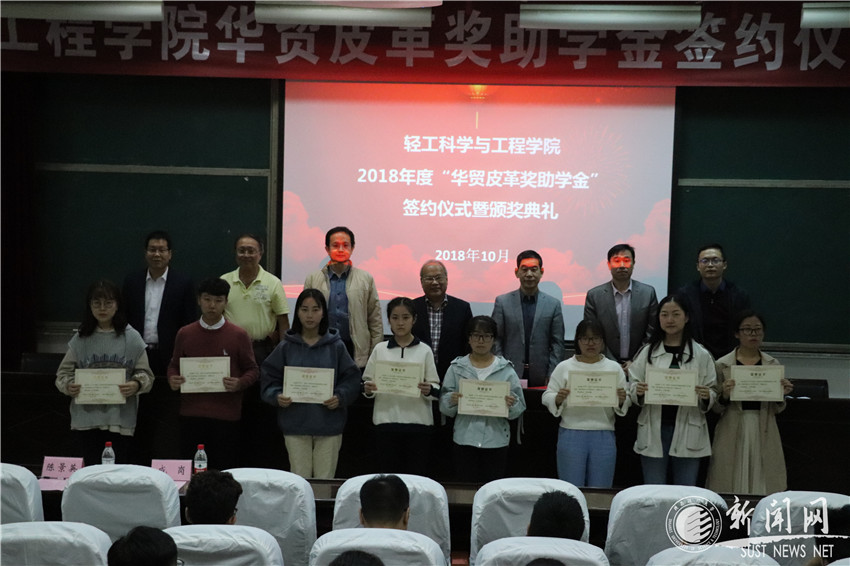 近日,轻工科学与工程学院“华贸皮革奖助学金”签约仪式暨颁奖典礼在3号教学楼101报告厅举行。这是轻工学院继顺丰奖学金、隆丰奖学金后设立的第16家企业奖学金。轻工学院一直高度重视困难家庭学生的资助工作,为丰富学生培养模式,提升人才培养质量,学院秉承“经济资助,成长辅助”的理念,充分利用校友、企业、社会等资源多渠道、全方位完善学院资助工作,稳步推进“一个核心,两项管理,三支队伍,四大平台”的资助工作新体系,努力开拓“多方联动、奖教结合、全面覆盖、突出典型”的育人工作新局面。截止2018年10月,学院共设企业奖助学金16项,资助总金额达56.2万元,惠及学生265人次。资助类型除传统的奖励学业优秀学生外,还延伸到在科技创新、学生活动、毕业实习、课题研究等方面表现优异的学生。