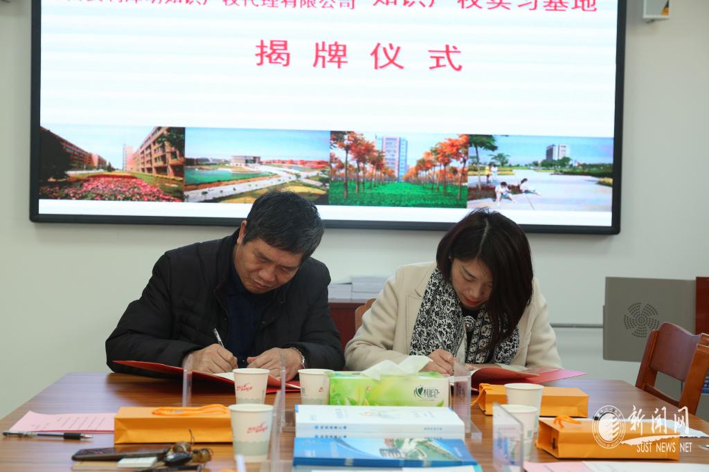 常务副院长殷海荣和贾晓玲分别代表学校和西安利泽明知识产权代理有限公司签订了知识产权实习基地协议。