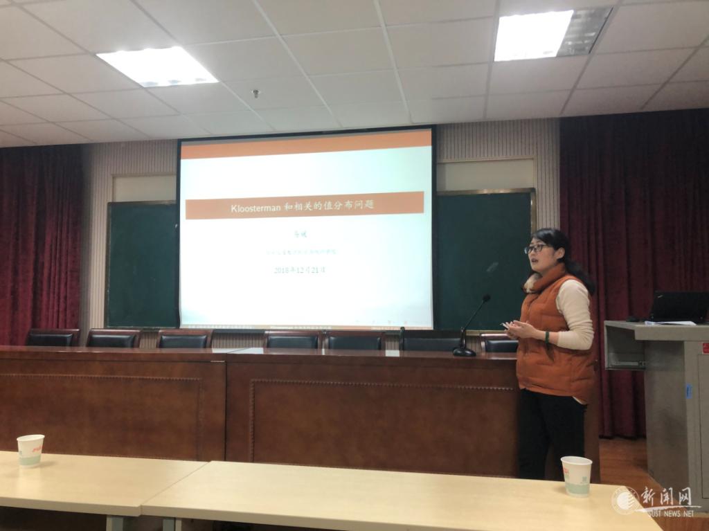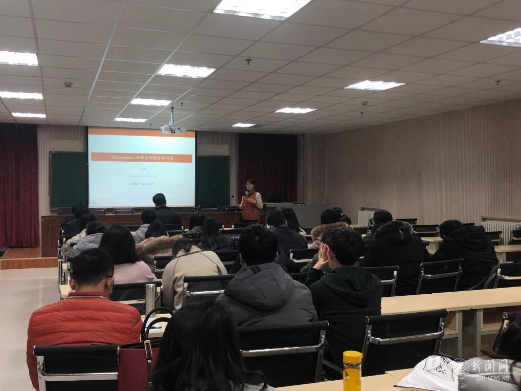 易媛教授在报告中指出,Kloosterman和及其相关问题的研究在现代解析数论以及自守形式理论中占有极其重要的位置,关于Kloosterman和及其算术性质是数论研究中关注的重要问题之一。易媛教授介绍了有关Kloosterman和均值分布的结果及其相关问题研究。报告会后,易媛教授耐心解答了老师和学生的问题,并结合自己做研究、写基金项目及培养研究生等方面的心得和经验与老师们进行了深入交流。