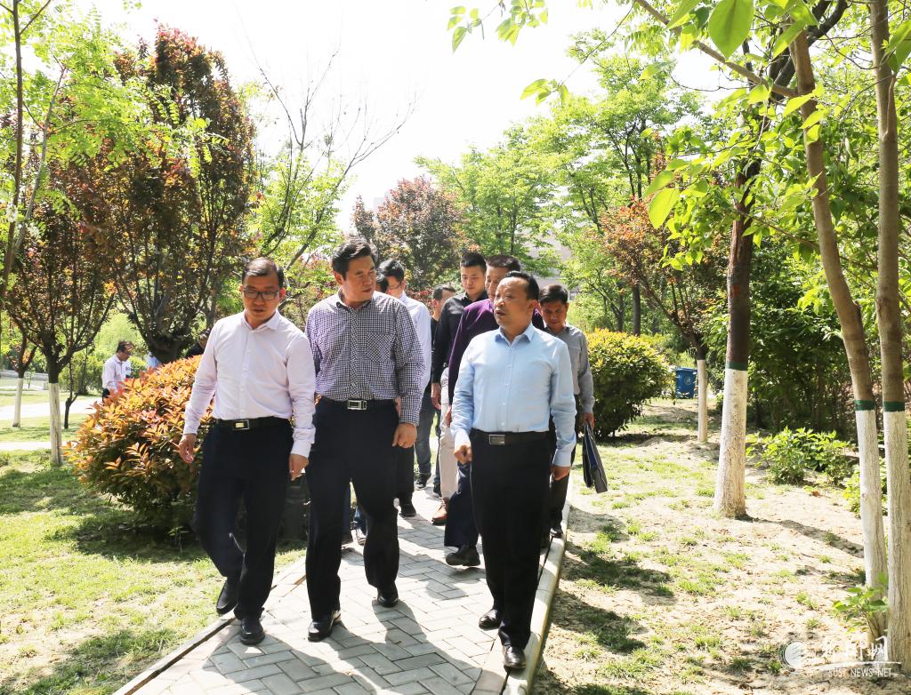 4月19日,西安市人大监察和司法委员会主任委员贾养勋、未央区副区长程希文率市水污染执法检查第五小组一行来我校调研校园水环境治理工作。我校党委副书记王道安陪同检查。