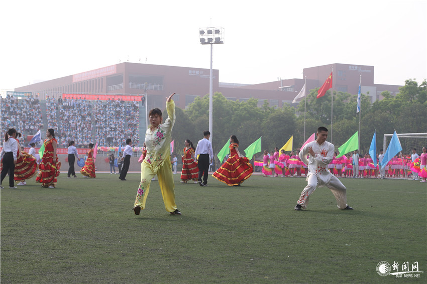 大学生团体表演的体育舞蹈《我和我的祖国》、扇子舞《今天是你的生日,我的祖国》气势磅礴、韵味十足,近千名大学生活力四射、斗志昂扬,用灿烂的笑容和优美的舞姿,为学校2019年田径运动会起舞喝彩。