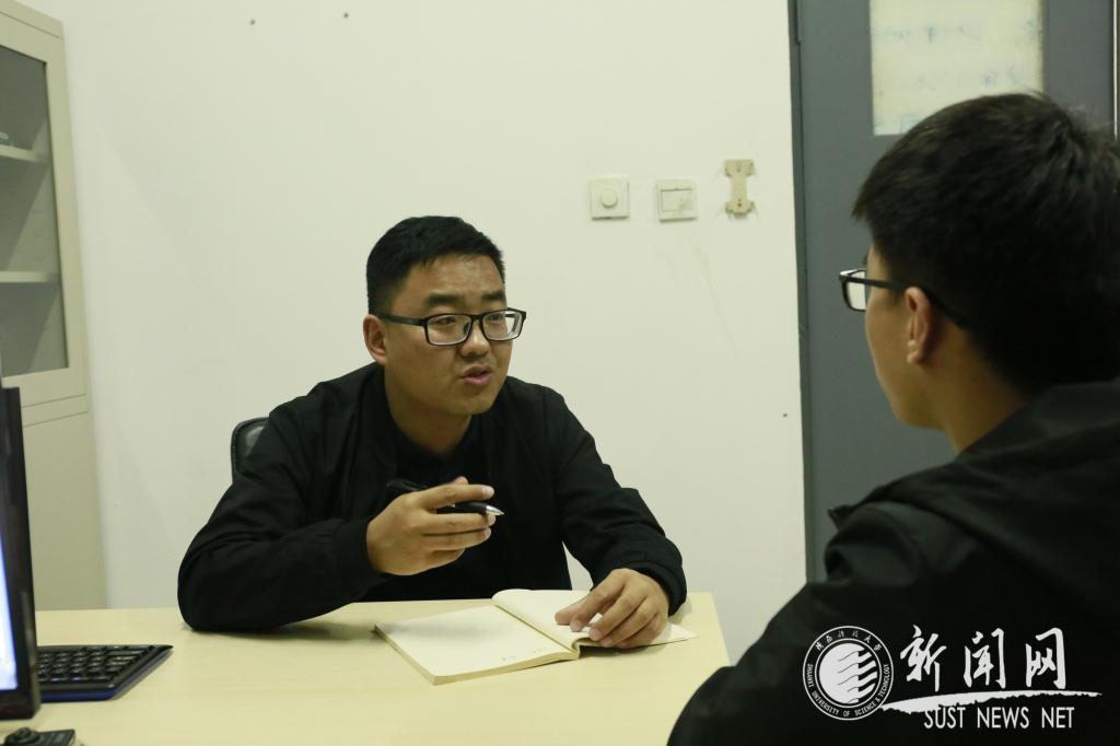 晚上十点,在八公寓辅导员工作站,薛战锋老师正在给一名面临两份求职选择的学生做分析指导,他详细了解情况后,用决策平衡单帮学生分析了两份工作的优势和劣势,帮助这名学生澄清求职诉求,做出适合自己的决策。