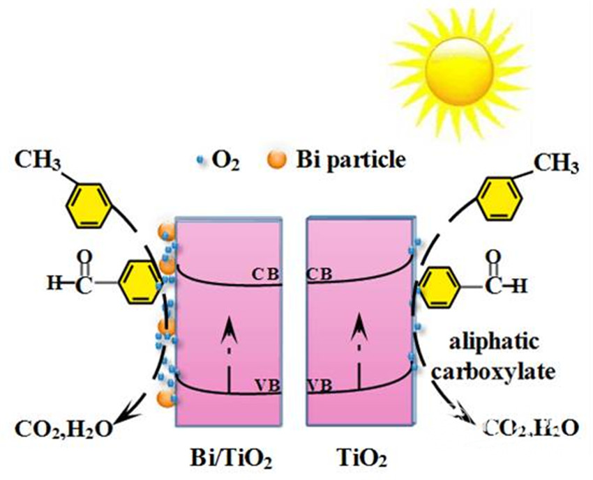 赵杰副教授利用两步水热制备了金属Bi修饰TiO2材料。发现金属Bi为VOCs降解中间体的矿化提供了充足的氧化剂,为解决光催化VOCs降解稳定性差提供了一种可行的方案。相关研究发表在国际杂志Catalysis Today(https://doi.org/10.1016/j.cattod.2018.12.045) (IF=4.667)上。