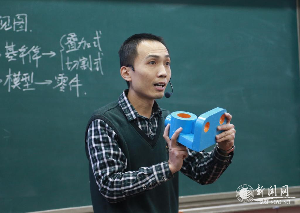 薪火相传,为科大,添砖加瓦。从2001年留校至今,刘庆立在教学岗位上不觉已经走过了18个春秋。回想起刚上讲台时的惶恐与不安,他相信每一位青年教师的成长历程中都凝聚着恩师的教诲与鞭策,督导的指导与帮助,以及学生的理解和支持。工程图学教研室至今仍旧秉承着良好的传帮带传统,他还清晰记得老一辈教师手把手教自己上课技能时的场景:杨君顺老师教授如何在黑板上徒手画圆,林茂和王玉茹老师教授如何控制好授课进度和时间,周明贵老师和张元莹老师教授怎样备课,怎样写教案,怎样批改作业,周志明老师教授如何改进教学细节和课堂氛围,郭红利老师教授讲课的逻辑和技巧。上好一门课,靠的是什么呢?他觉得靠的是传承与创新。传承就是把老一辈教师的教学经验继承下来,创新就是根据新时代学生的特点,不断地改革、调整和更新。