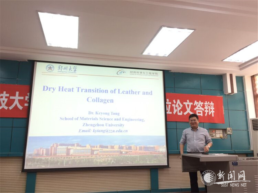 5月20日下午,应研究生院和轻工科学与工程学院邀请,郑州大学材料科学与工程学院副院长汤克勇教授作客我校“未央导师论坛”,在轻工学院学术报告厅为学院师生作了一场题为《Dry Heat Transition of Leather and Collagen》的学术报告。报告会由轻工学院副院长吕斌致欢迎辞并主持,学院部分教师和博士硕士研究生参加了此次报告会。