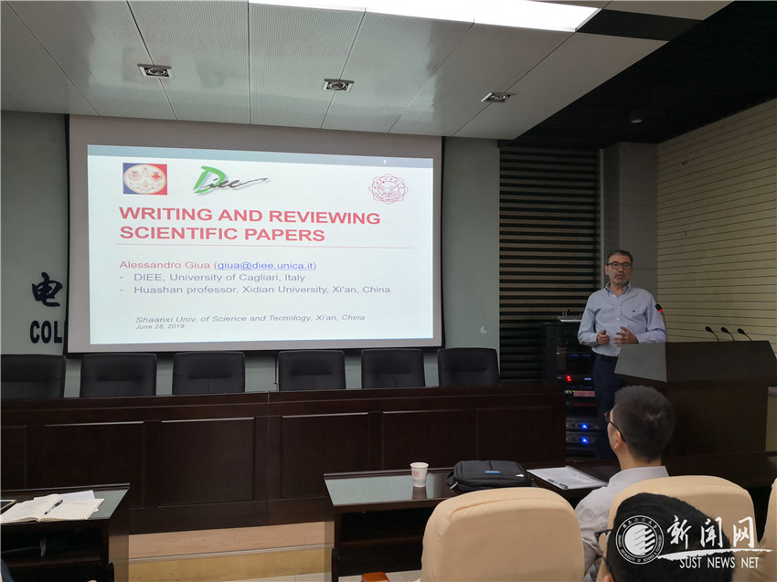 6月28日上午,应我校研究生院、电气与控制工程学院邀请,意大利卡利亚里大学、法国艾克斯-马赛大学教授AlessandroGiua作客我校“未央导师论坛”,做了题为“Writing and reviewing scientific papers”的学术报告。本次会议由研究生院主办,电控学院承办,电控学院班子成员及相关学院师生参加了报告会,会议由电控学院副院长周强主持。