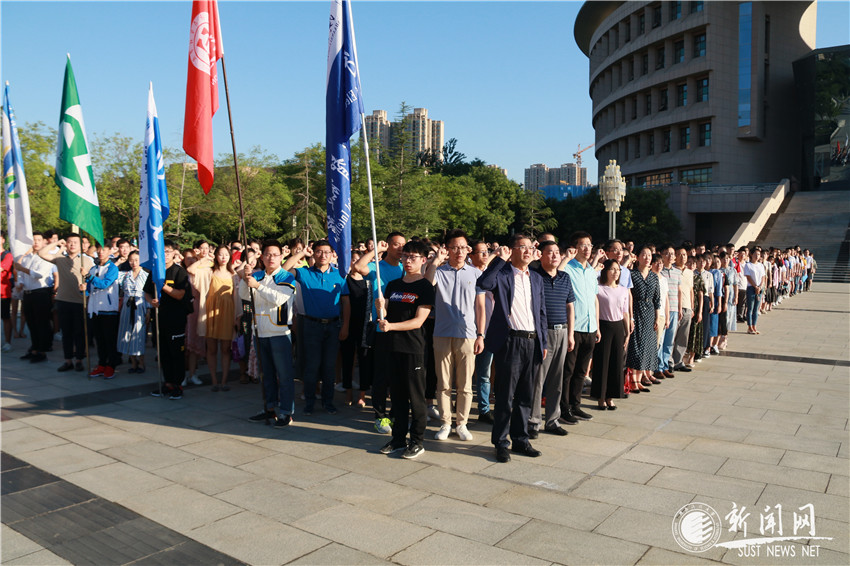 回首往昔牢记初心使命,面向未来勇立时代潮头。为庆祝中国共产党建党98周年,激励广大党员师生不忘初心、牢记使命,建功立业新时代。7月1日清晨,我校师生党员代表近五百人在图书馆南广场举行“迎七一·庆祝建党98周年”升旗仪式暨党员集体宣誓活动。校党委副书记温锋、副校长李志健,学工部、人事处全体党员干部及全体学生党支部书记、支部委员参加了活动。