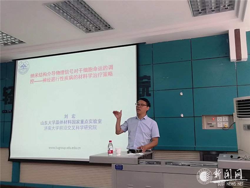 7月24日,应我校科技处、前沿院及轻工科学与工程学院邀请,山东大学晶体材料国家重点实验室、济南大学前沿交叉科学研究院刘宏教授作客我校“前沿科学报告”,做了题为“纳米结构介导物理信号对干细胞命运的调控——神经退行性疾病的材料学治疗策略”的学术报告。轻工学院相关专业教师、研究生参加了此次报告会。报告会由我校柔性引进人才、加拿大工程院院士倪永浩教授主持。