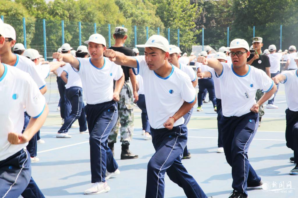 9月3日,随着一声声响亮的口令,学员们的动作整齐划一。站军姿,踢正步,调整手臂和抬腿的高度,每一个动作都力求做到极致与完美,这些稚气未脱的“零零后”们都在用不服输的倔强证明自己。高温的天气,他们依然坚持着,呐喊着,汗水划过他们稚嫩的脸庞,但他们并没有停下自己向前迈进的脚步。