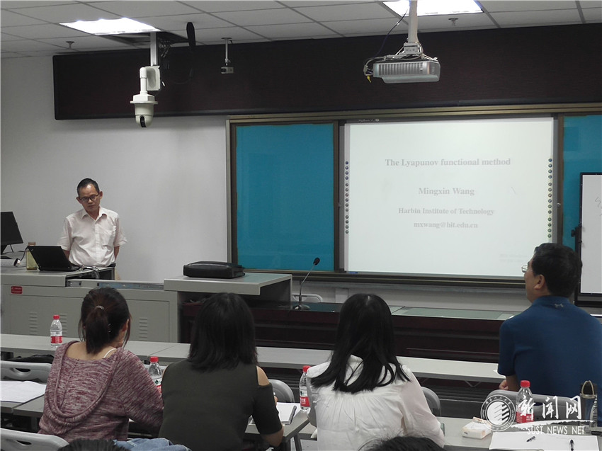 9月29日上午,应文理学院邀请,哈尔滨工业大学王明新教授作客我校“前沿科学报告”,做了题为“The Lyapunov functional method”的学术报告。报告会由文理学院副院长郭改慧教授主持,文理学院数学系相关教师及研究生参加了此次报告会。