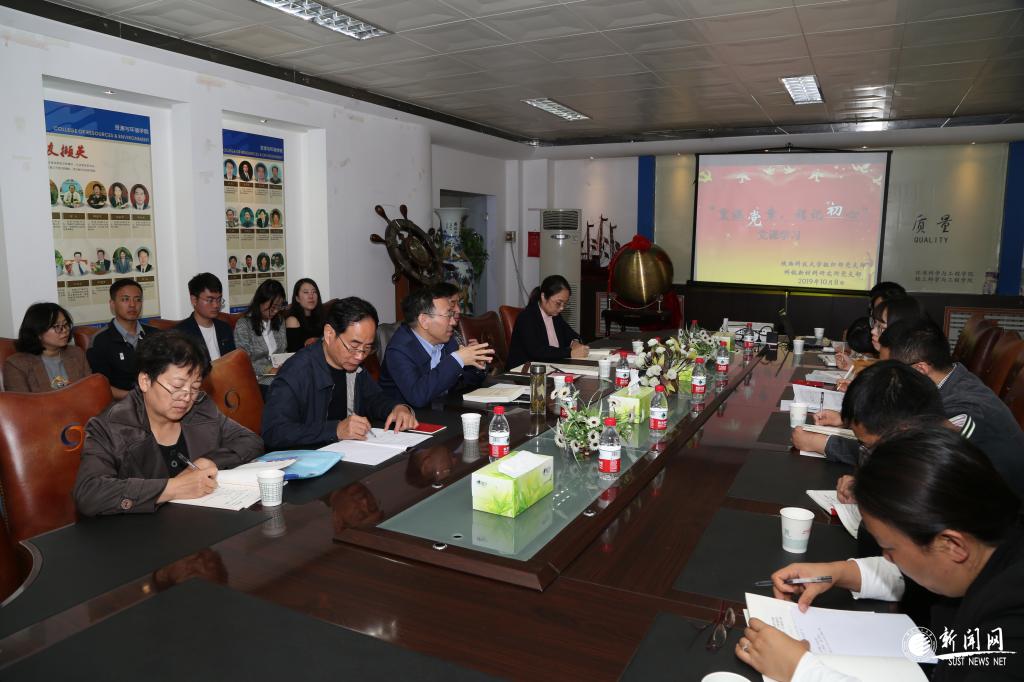 10月8日晚,组织部党支部、轻工科学与工程学院科锐新材料研究所党支部联合开展集中学习交流。作为组织部党支部党员和科锐新材料研究所党支部联系领导,校党委书记姚书志参加学习交流并围绕《党章》总纲内容进行专题辅导。会议由组织部党支部副书记吕文华、科锐新材料研究所党支部书记田振华共同主持。组织部党支部、科锐新材料研究所党支部全体党员,轻工学院党委负责人及全体辅导员参加会议。校“不忘初心、牢记使命”主题教育第一指导小组全体成员列席会议。
