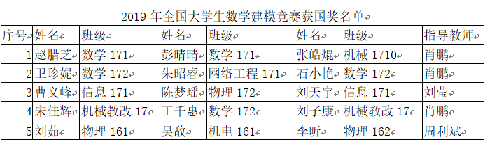 近日,2019年“高教社杯”全国大学生数学建模竞赛陕西赛区获奖名单公布,我校获得全国一等奖1队;获得全国二等奖4队;获陕西省一等奖21队,获陕西省二等奖25队。