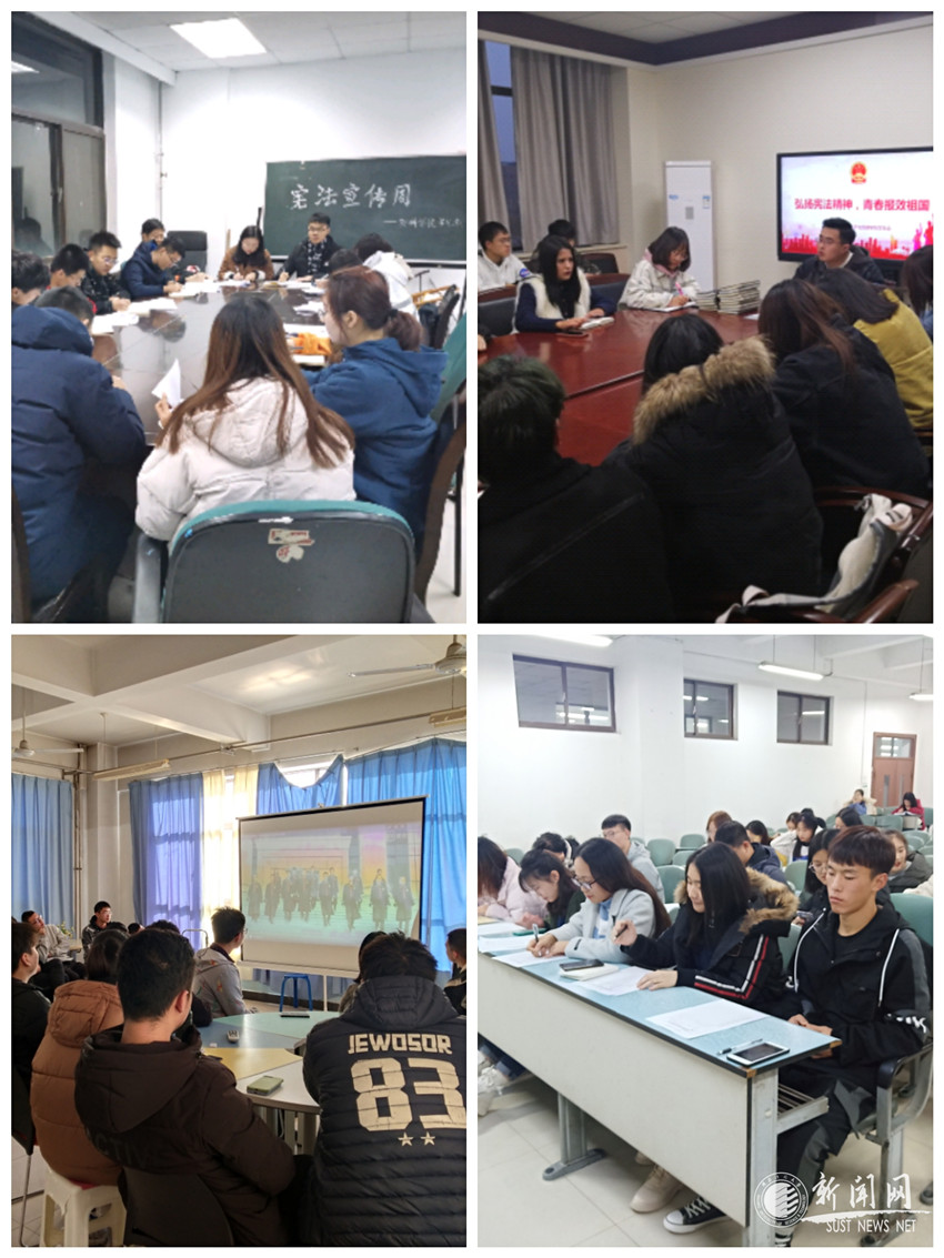 自11月29日起,学生会各学院分会结合本学院实际,分别开展学生骨干专题学习并通过学生骨干结合宣讲、班会、晨读等形式,积极引导广大同学学习宪法知识、交流学习心得、感悟法治文化、弘扬宪法精神,引导广大同学发自内心拥护宪法地位,筑牢宪法根基。还利用线上宣传途径,围绕宪法开展专题学习系列活动。从普及基本常识到学习具体内容,从明确国旗、国徽、首都等到学习公民的基本权利和义务,学生会发挥服务、引导同学的作用,紧密围绕习近平总书记全面依法治国新理念新思想新战略,从各角度积极推送有关普及宪法知识、加强法治教育的文章,做到多层次、有深度、真领会、筑根基。