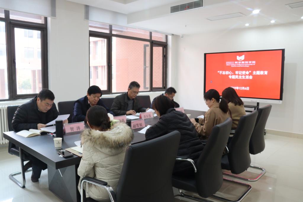 12月6日下午,我校阿尔斯特学院召开班子“不忘初心、牢记使命”主题教育专题民主生活会,副校长王海燕到会指导,校主题教育第二指导小组副组长高东强出席会议。院党政班子成员、全体党员参加会议,会议由院直属党支部书记贺涛主持。