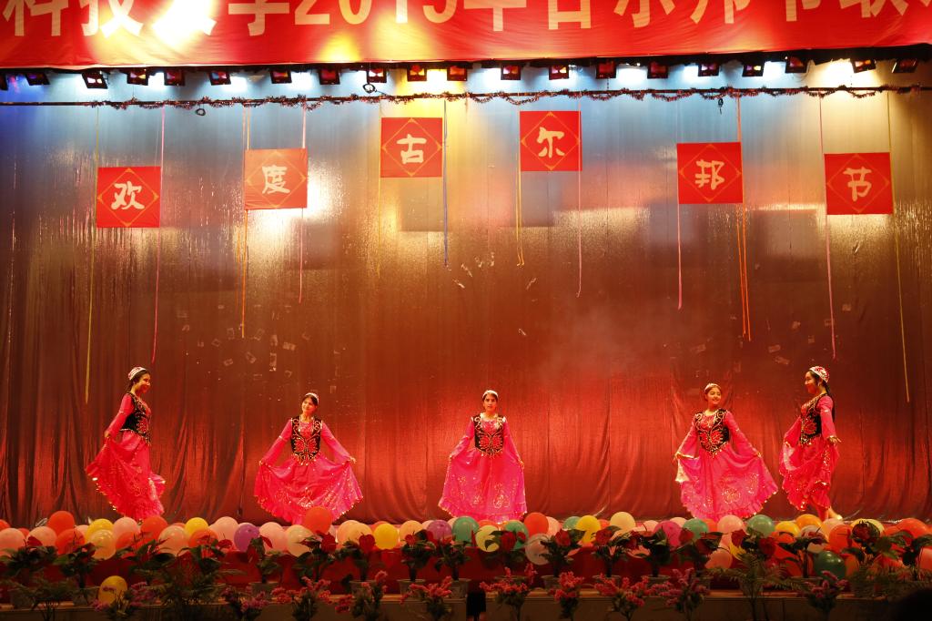 最后,老师们纷纷上台与穆斯林同学一起跳起欢快的舞步,晚会在团结、友爱、祥和、幸福的氛围中落下帷幕。