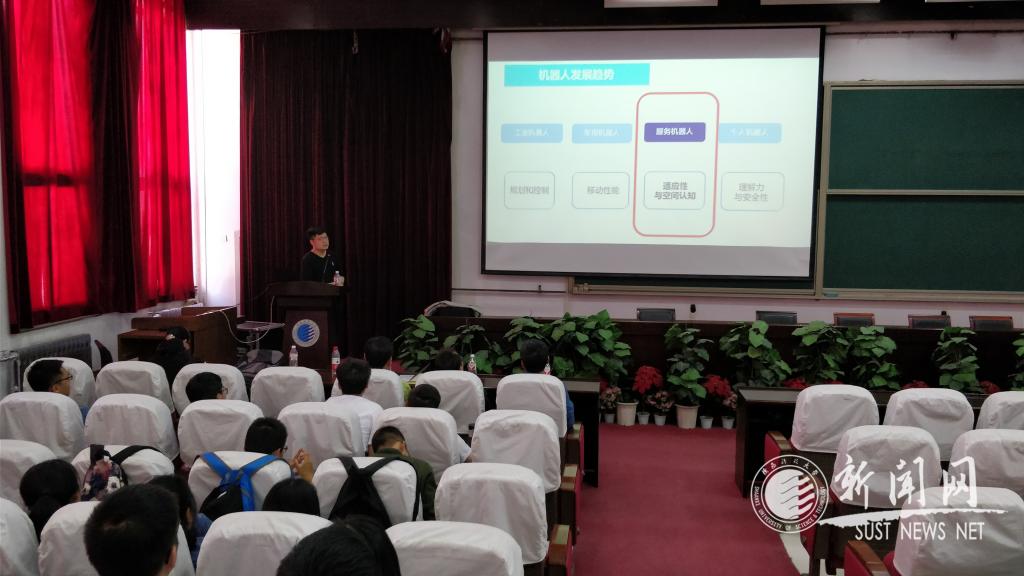 3月28日,我校杰出校友·企业家论坛邀请到智能机器人领域的“网红”——南京天之博特机器人科技有限公司创始人田博老师为全校300多名师生带来了一场主题为“智能机器人的创新与创业”的精彩讲座。田博老师从自己研究智能机器人十多年的经验出发,围绕国内外智能机器人现状、发展趋势、创新方向等方面,用幽默、生动的语言,分享分析了国内外智能机器人的鲜明案例,阐述了机器人和人工智能技术的联系和区别,提出未来机器人向深度学习、语音语义、手势识别、人机交互、适应性、安全性等多角度发展的趋势。同时他也具体分析了机器人行业未来十年的发展趋势,对同学们选择机器人行业提出了殷切的期望。讲座结束后田博老师现场与科大师生互动提问解答,不仅对从事机器人行业应该多读书还是早工作的具体问题给出建议,还发表了对人工智能是否会取代人类这种科幻问题的看法,有效地把智能机器人的创新与创业理念传递给了全场的师生,令全场聆听者受益匪浅。