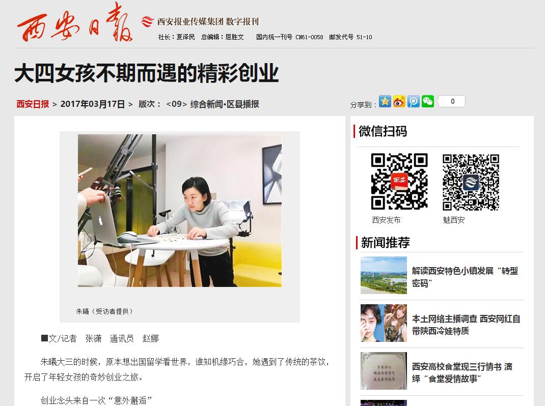 3月15日,一篇《科大青年 | 朱曦:她用了5个月的时间,带领团队从一无所有到月入四万》的深度报道在我校官微发出后,迅速引起了众多媒体的关注。朱曦,这位我校大四女孩的精彩创业故事先后被西安日报、网易、凤凰网等报道或转载,陕西省教育厅微博也推送了一条关于朱曦创业团队的“从0开始,向1迈进”的微博。