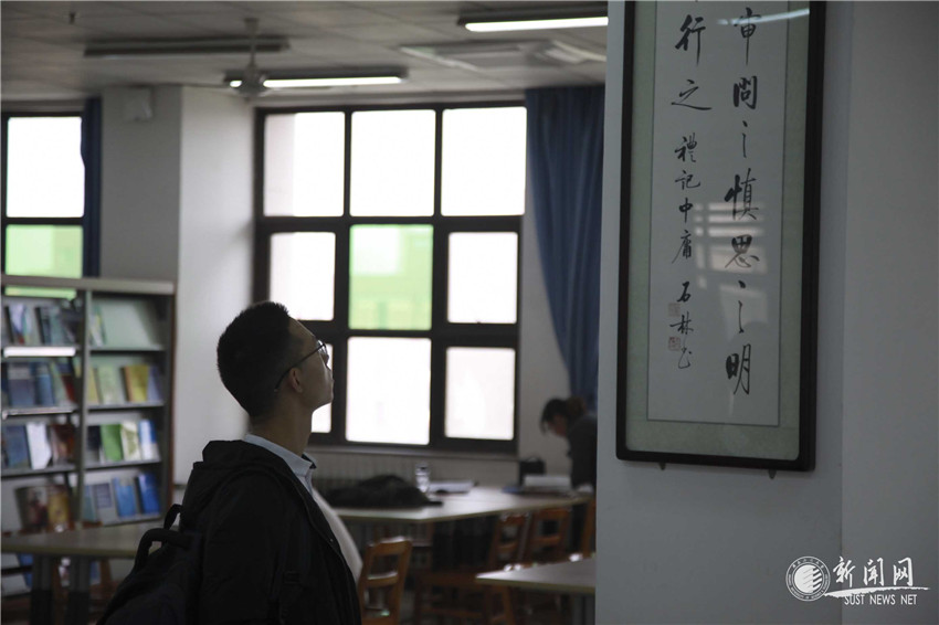 这报刊阅览室明亮舒适,还有一幅他十分喜爱的书法——出自《中庸》的“博学之,审问之,慎思之,明辨之,笃行之。”时时驻足凝看,每每都有不同的心得。