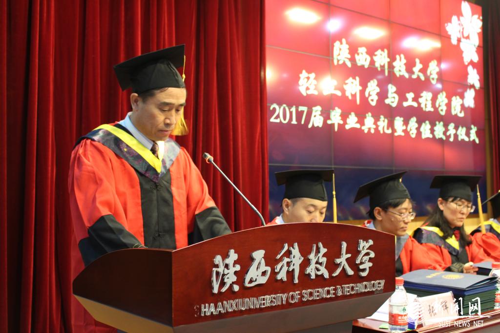 2017年6月23日,轻工科学与工程学院2017届毕业典礼暨学位授予仪式在图书馆报告厅隆重举行。轻工学院学位委员会委员代表、教师代表、毕业生家长代表以及2017届全体毕业生共同参加了此次典礼,毕业典礼由轻工学院副院长张辉主持。