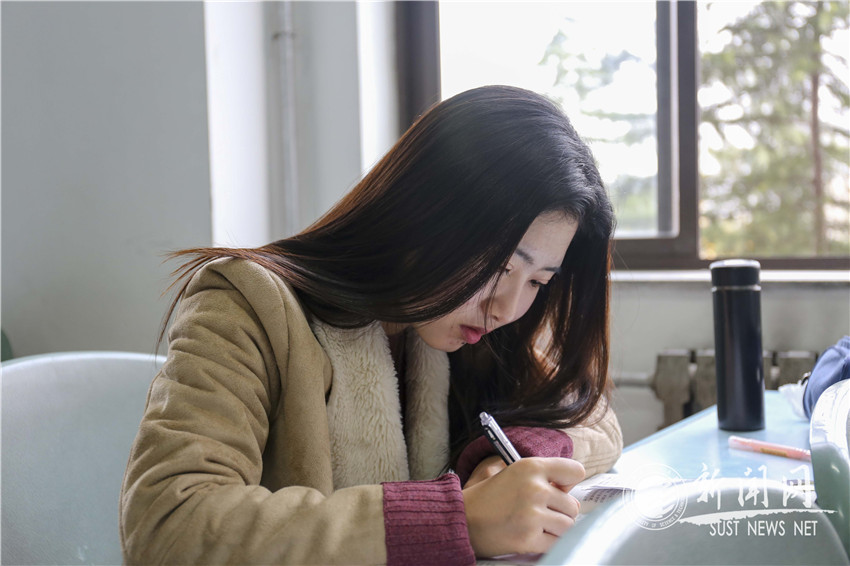 初冬周末的早晨,当大多数学生在温暖的被窝里睡觉的时候,“学霸”们早早就来到教学楼自习,杨金灿同学就是其中一位。