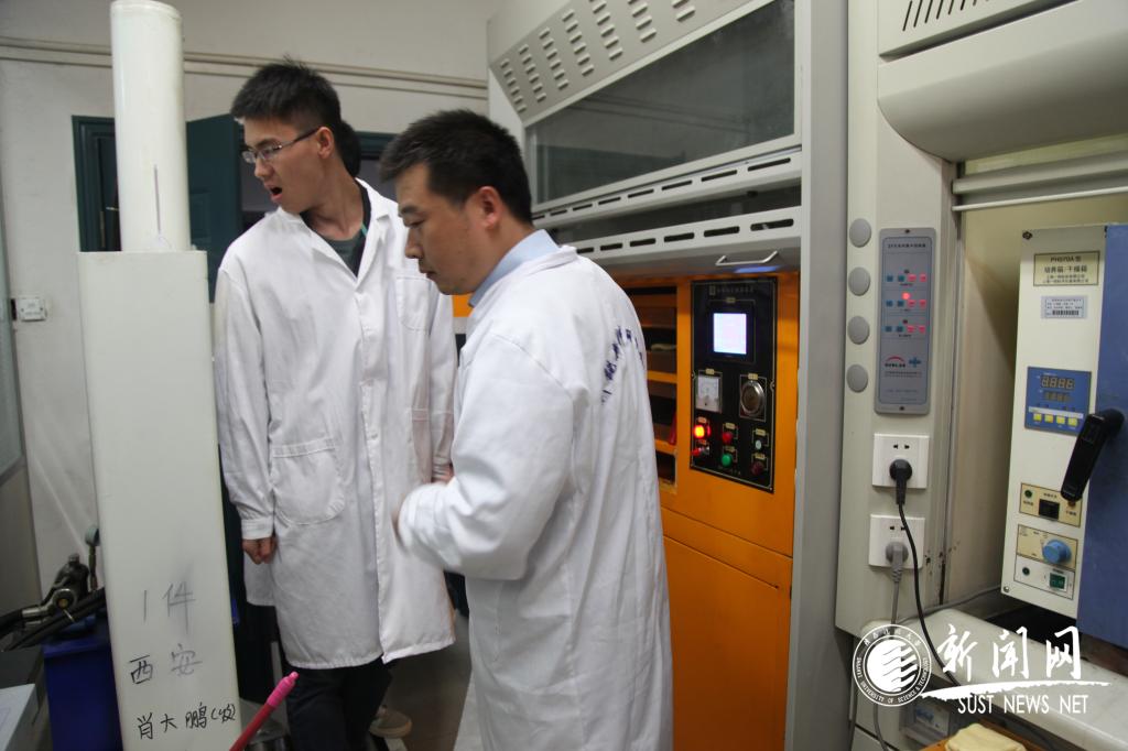 研究鞋底材料的老师们在实验室里,默默无闻的将手中的接力棒传下去,为科大学子铺就成功的基石。