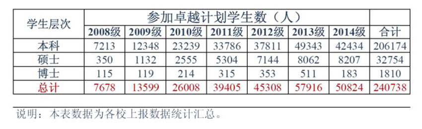 从所属关系看,教育部直属高校45所、其他部属高校15所,还有地方高校148所。可以说,此次在沪结盟的地方高校占比超过七成,是“卓越计划”实施的主力军。从参加“卓越计划”培养的在校学生人数看,近年呈现増势,最近几年每届学生达5万人数量级,累计已培养20多万“卓越工程师”人才,其中硕博研究生达3万余名。同时,参与这项计划的企业也达数千家之多,包括大量大型企业和高新技术企业。