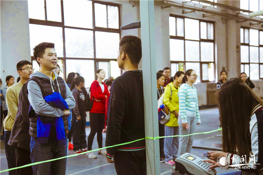 一年一度的“体测季”又开始了。大三、大四年级体测将要陆续在10月的周六周日举行。大一、大二年级体测也将在十月份的体育课上进行。测试的项目有身高、体重、肺活量、立定跳远、坐位体前屈、50米短跑、引体向上(男生)、1000米长跑(男生)、仰卧起坐(女生)、800米长跑(女生)。下面,让我们随着镜头来看看这次体测的情况吧。标准田径场外公布了体测的项目以及达标要求进行肺活量测试的班级正在分发吹嘴在田径场东看台下进行的肺活量测试身高体重测量坐位体前屈测试在标准田径场进行的立定跳远测试男子1000米测试