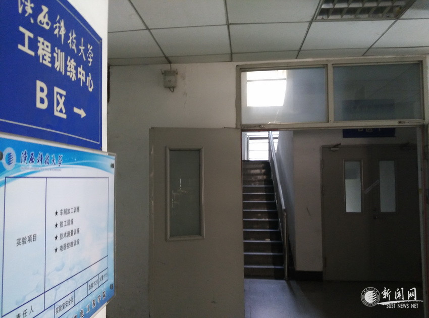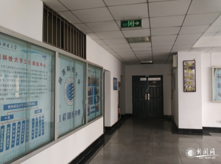 从图书馆北侧沿着科大环路向西走,首先看到的就是二号实验楼,二号实验楼分A、B两栋,靠南为A楼,靠北为B楼。B楼是机电工程学院所在,而实训中心A区就在这里,在金工实习时会到这里来。A楼是电气与信息工程学院所在,我校计算机中心也在这里的六楼,大一时候的上机课几乎都在这里。在A楼和B楼中间是科技展厅,里面陈列了我校学生的一些优秀科技作品。