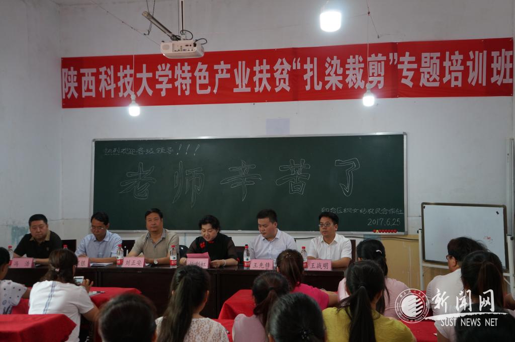 为深入贯彻落实省教育厅、省扶贫办关于《陕西特色产业高校扶贫培训计划实施方案》的文件精神,扎实推进我校2017年扶贫工作专项会议的工作部署,6月25-27日,我校首期陕西特色产业扶贫“扎染裁剪”培训班在铜川市印台区阿娘织女合作社成功举办。