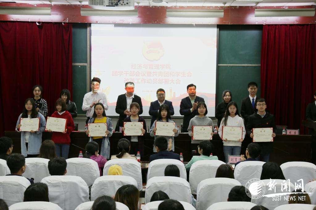 为贯彻落实《高校共青团改革实施方案》和《学联学生会组织改革方案》文件精神,进一步改进学院团学组织工作作风,提升服务效能,持续发力“服务年”,助力我校“文明校园”创建工作,经济与管理学院于4月13日下午召开团学干部会议暨共青团和学生会改革工作动员部署大会。校团委副书记李鹏、校学生会主席郭旭,经管学院院长助理(学生工作负责人)张凯凯、全体辅导员、各团学组织负责人、班级两委代表参加本次会议。大会由院团委副书记周莹(学生)主持。