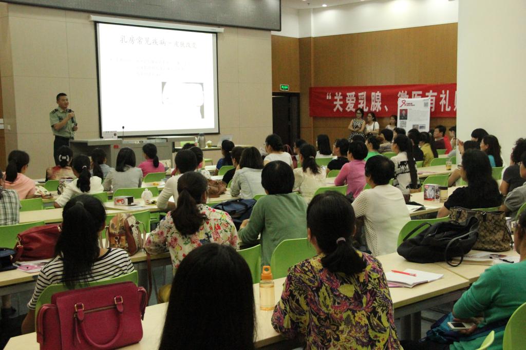 李南林副教授结合自身多年的临床经验,用详实的资料、典型的病例,生动讲解了乳房保健知识、乳腺疾病类型、如何早期发现乳腺疾病以及自我检查和医学检查、治疗方法、正确对待疾病等内容。在讲到每一种乳腺疾病的时候,李教授都会讲解一个病例,结合照片,让大家直观地了解疾病的形态和表现症状。讲座中,李南林副教授善于先提问引起大家思考,让大家参与进来,使枯燥的医学知识变得鲜活起来,许多通俗易懂的举例让大家对专业的乳腺知识听的津津有味,现场气氛十分活跃。
