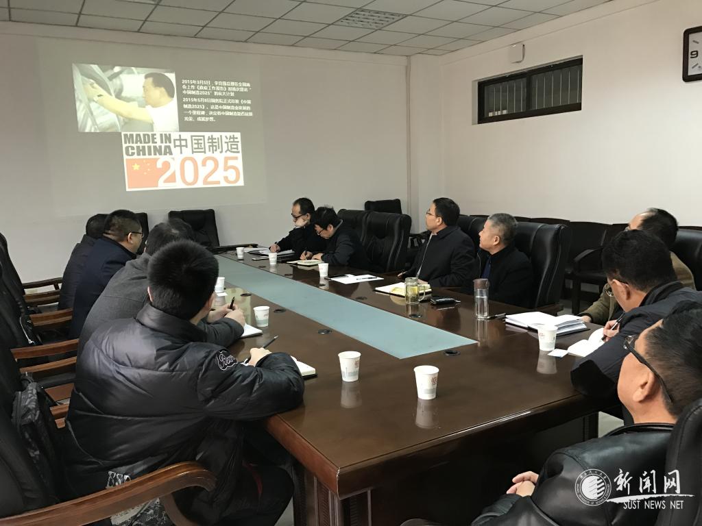 在成功成为教育部首批“互联网+中国制造2025”产教融合计划项目的十七个试点院校后,我校积极开展该项目的前期准备工作,于近日邀请了项目负责方杨健总经理等一行四人来到电气与信息工程学院,对项目进一步的准备与实施进行了沟通交流,副校长郭霄鹏、电信学院领导班子成员及相关专业负责人参加了此次交流座谈。