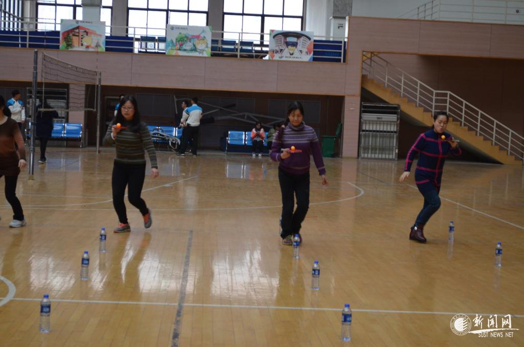 为进一步丰富食品学院教职工文娱活动,缓解工作压力,提高教职工参加体育锻炼的积极性,增强体质,营造积极向上、和谐团结的良好氛围,食品学院工会于2016年12月29日在校文体馆举办教职工趣味运动会。活动分为疯狂乒乓球、两人三足踩气球、默契接球、持球跑四个个人项目及折报纸、指压板障碍赛、终极撕名牌大战三个团体项目。